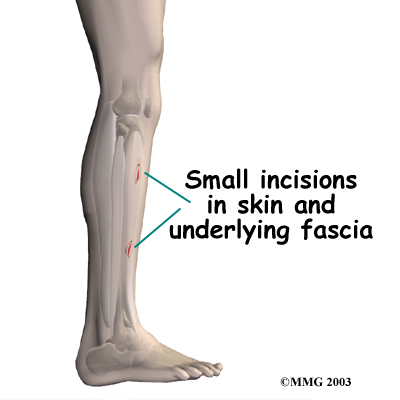 If the problem has been present for more than three months, the surgeon may only need to make one or two incisions to cut the layer of fascia and reduce pressure inside a single problem compartment.
