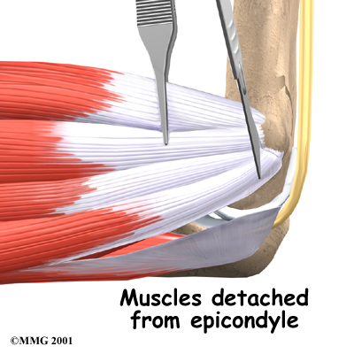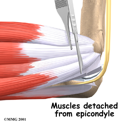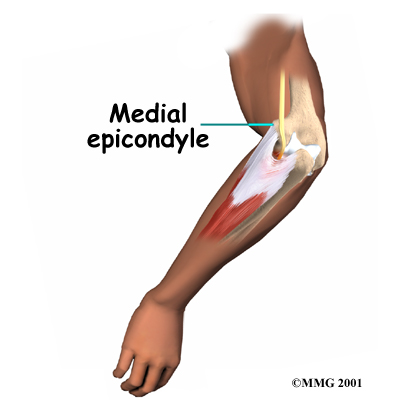 The other method simply removes the medial epicondyle on the inside edge of the elbow, a procedure called medial epicondylectomy. By getting the medial epicondyle out of the way, the ulnar nerve can then slide through the cubital tunnel without pressure from the bony bump.