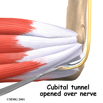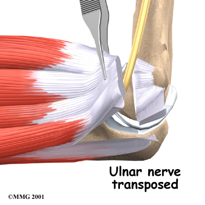 One method is called ulnar nerve transposition. In this procedure, the surgeon forms a completely new tunnel from the flexor muscles of the forearm. The ulnar nerve is then moved (transposed) out of the cubital tunnel and placed in the new tunnel.