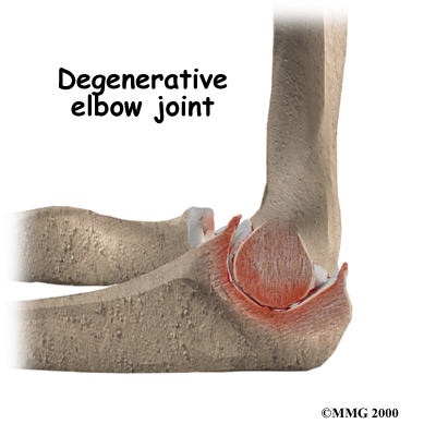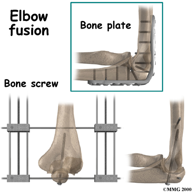 As the joint heals, the tendon or fascia forms a cushion of thick, tough tissue between the bones. The tissue pads the ends of the bones and reduces pain while still allowing the elbow to move.