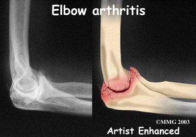 Sustaining an elbow injury, however, can lead to problems with the joint later in life.  This is true for any injury to a joint but the elbow is one of the joints particularly sensitive to developing problems later on.  The initial injury can change the way the joint works just enough to cause extra wear and tear to the surfaces of the joint. Over time, the joint degenerates, causing pain and difficulty with daily activities. This condition is called osteoarthritis (OA), degenerative arthritis, or posttraumatic arthritis.