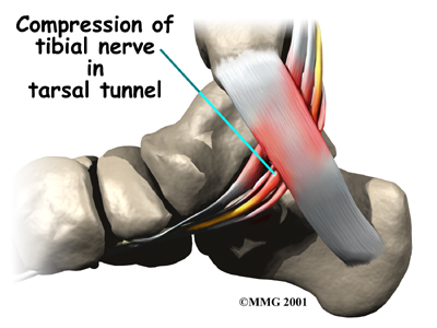 In many cases, doctors aren't sure what causes tarsal tunnel syndrome. Inflammation in the tissues around the tibial nerve may contribute to the problem by causing swelling in the tissues and on the nerve.