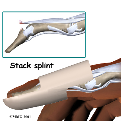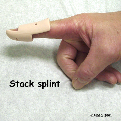 recommendation for the type that will be most beneficial to your recovery. There are that have been designed to make it easier to wear at all times. In some extreme cases where the patient has to use the hands to continue working (such as a surgeon), a metal pin can be placed inside the bone across the DIP joint to act as an internal splint allowing the patient to continue to use the hand. The pin is removed at six weeks.