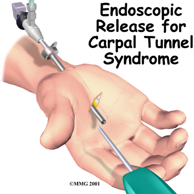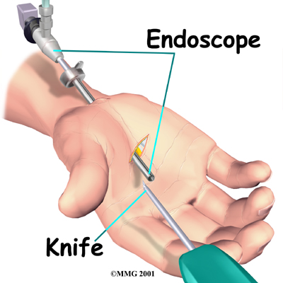 This procedure is done using an endoscope (a small, fiber-optic TV camera) to look into the carpal tunnel through a small incision just below the wrist. Using the camera allows the surgeon to release the problematic tissue without disturbing the overlying tissues.