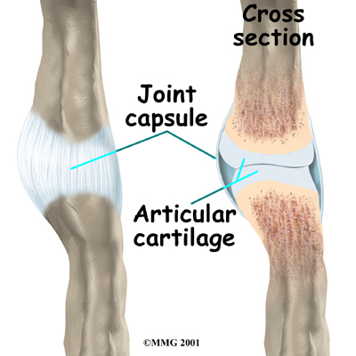 Ligaments are tough bands of tissue that connect bones together. Several ligaments hold the joints together in the finger. These ligaments join to form the joint capsule of the finger joint, a watertight sac around the joint. The joint surfaces are covered with a material called articular cartilage. This material is the slick, spongy covering that allows one side of a joint to slide against the other joint surface easily. When this material wears out, the joint develops a type of arthritis called osteoarthritis and becomes painful. Rheumatic arthritis is a different form of arthritis (which is more widespread in the body and develops due to an autoimmune disorder) but can also cause wearing out of the joint surfaces and deformity of the joints.