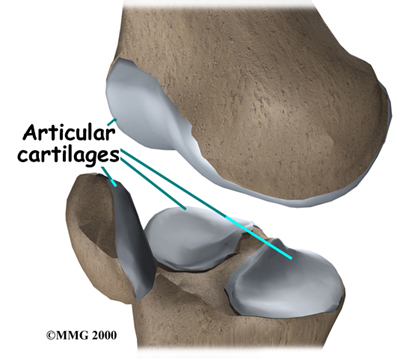 Articular cartilage covers the ends of bones. It has a smooth, slippery surface, which allows the bones of the knee joint to slide over each other without rubbing. This slick surface is designed to minimize pressure and friction as you move.