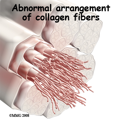 Strength of the patellar tendon is in direct proportion to the number, size, and orientation of the collagen fibers that make up the tendon. Overuse is simply a mismatch between load or stress on the tendon and the ability of that tendon to distribute the force. If the forces placed on the tendon are greater than the strength of the structure, then injury can occur. Repeated microtrauma at the musculotendinous junction may overcome the tendon's ability to heal itself. As a result issue breakdown occurs triggering an inflammatory response that leads to tendonitis and even partial tears.