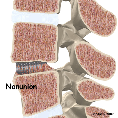 Sometimes the bones do not fuse as planned. This is called a nonunion, or pseudarthrosis. (The term pseudarthrosis means false joint.) When more than one level of the spine is fused at one time, there is a greater chance that nonunion will occur. Fusion of more than one level means two or more consecutive discs are removed and replaced with bone graft. If the joint motion from a nonunion causes pain, you may need a second operation.
