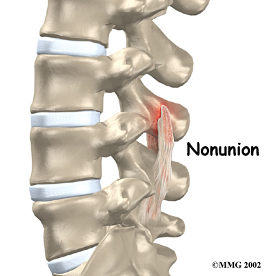 Sometimes the bones do not fuse as planned. This is called a nonunion, or pseudarthrosis . (The term pseudarthrosis means false joint.) When more than one level of the spine is fused at one time, there is a greater chance that nonunion will occur. Fusion of more than one level means that two or more consecutive discs are removed and replaced with bone graft. If the joint motion from a nonunion causes pain, you may need a second operation.