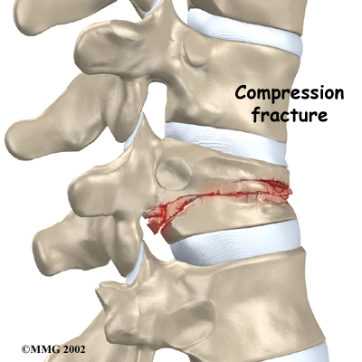 Patients with osteoporosis are prone to compression fractures in the spine bones, or vertebrae. The front of a vertebra cracks under pressure, causing it to collapse in height. More than 700,000 such fractures occur every year in the United States. These fractures often cause poor back posture, debilitating pain, and difficulty completing routine activities.