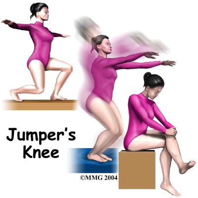 Jumper's knee is usually caused by overuse of the patellar tendon. Kids who play sports with a lot of squatting and jumping are most at risk. In order to squat and to land softly from a jump, the quadriceps muscle must work extra hard to slow the body down and protect the knee. It does this by lengthening as it works, which is called an eccentric contraction. This muscle action places very high tension on the patellar tendon. When squatting and jumping are performed over and over, the repetitive stress on the tendon causes injury to the individual fibers of the tendon. The tendon becomes inflamed and painful. This is the condition called jumper's knee.