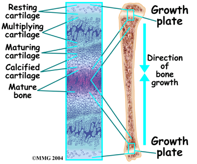 Sinding-Larsen-Johansson disorder is part of a category of bone development disorders known as the osteochondroses. (Osteo means bone, and chondro means cartilage.) In normal development, specialized areas called growth plates change over time from cartilage to bone. The growth plates expand and unite. This is how bones grow in length and width. Bone growth centers are located throughout the body.
