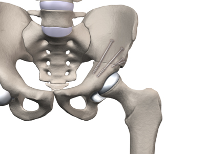 Realignment of the acetabulum is called a pelvic osteotomy. This procedure changes the angle of the acetabulum (socket) so that it better covers, or contains, the femoral head. To perform this procedure, an incision is made in the side of the buttock. The bone of the pelvis is cut and realigned in a new position. Large metal pins or screws are then inserted to hold the bones in the new position until the bone has healed. The pins usually must be removed once the bone has healed.