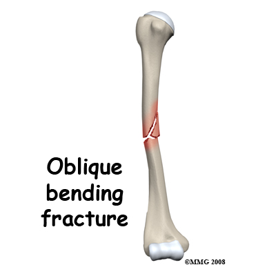 Fractures of the shaft of the humerus that occur from bending forces may have a short oblique pattern or may have multiple fragments.