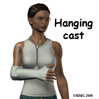 The cast is suspended from the neck to a ring attached to the forearm part of the cast. This point of suspension is chosen so that the upper arm hangs straight when the patient is sitting or standing. The cast does not immobilize the fracture but uses the traction from the weight of the hanging cast to position the arm so that the fracture is straight.