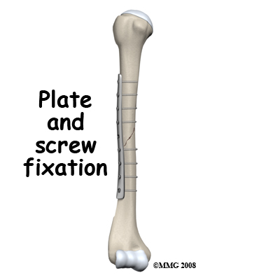 The operation with requires opening up the fracture, exposing the bone and putting the fragments together, then holding them in place with screws from a metal plate going into the bone. This system affords rigid secure fixation and can also compress the bone fragments together. This aids healing. Exposure of the fracture site makes it possible to reduce the fragments exactly but it does disturb the blood supply of the fracture site. Bone graft can be placed in the fracture site to help healing if considered necessary.