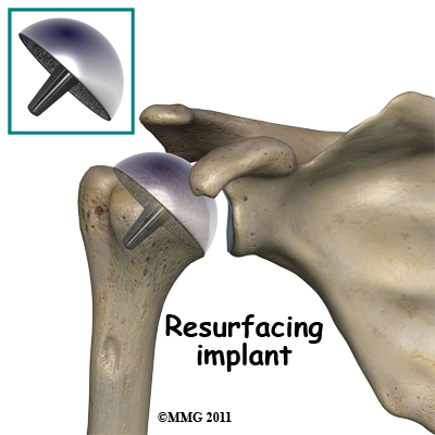 A newer procedure called humeral head resurfacing is gaining popularity and may help save the joint. Instead of removing the head of the humerus and replacing it, the bone is smoothed down and a metal cap placed over the smoothed head like a tooth capped by the dentist. The cap is held in place with a small peg that fits down into the bone. Joint resurfacing requires that the patient have enough healthy bone to support the cap.