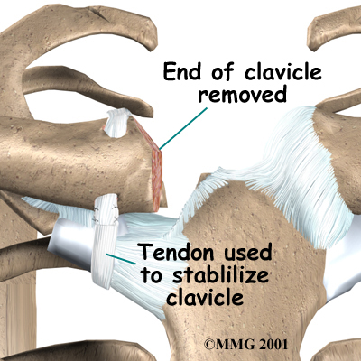 may be used to tighten the connection between the end of the clavicle and the first rib. Surgeons use a piece of tendon taken from the wrist or a piece of fascia taken from the thigh. These are referred to as tendon grafts or fascia grafts. The graft is then: