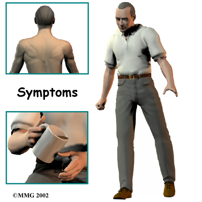 The first sign to appear in some patients is a change in the way they walk. They don't realize this problem is coming from their neck. But pressure on the spinal cord in the neck can affect the nerves and muscles in the legs, leading to changes in the way they walk. Eventually their walking pattern gets jerky and they lose muscle power in the legs. This is called spasticity.