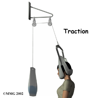 After initial immobilization, our first treatments are used to ease pain and inflammation. Our physical therapist may use electrical stimulation treatments to help calm your muscle spasms and pain. We might recommend traction as a way to gently stretch your joints and the muscles of your neck. This can be done using a machine with a or our physical therapist can apply the traction pull by hand.