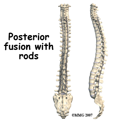 When surgery is performed for scoliosis metal rods or screws are used to help straighten and hold the spine in a corrected position. The vertebra are fused (joined together) to help correct the curvature. Luckily, only a small number of people with scoliosis require surgical intervention. New surgical techniques are designed to give maximum correction with a minimum of incisions and scarring.