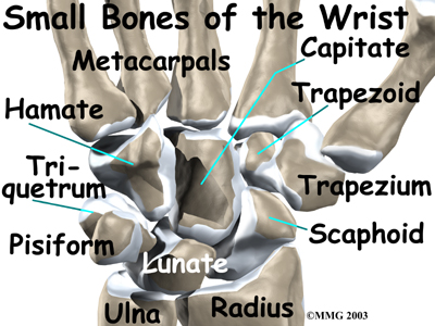 One reason that the wrist is so complex is that every small bone forms a joint with the bone next to it. This means many small joints make up the wrist joint. Ligaments connect all the small bones to each other, and to the radius, ulna, and metacarpal bones.