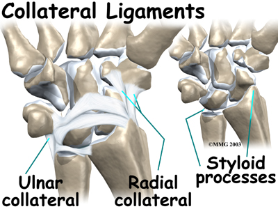 Two important ligaments support the sides of the wrist. These are the There are two collateral ligaments that connect the forearm to the wrist, one on each side of the wrist.