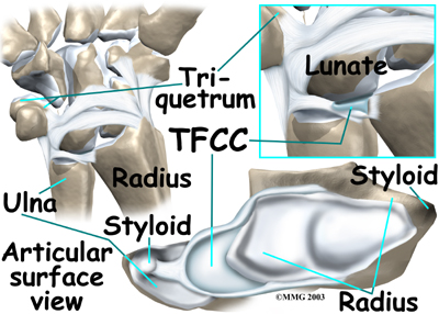 The TFCC is a small cartilage pad that cushions this part of the wrist joint. It also improves the range of motion and gliding action within the wrist joint.
